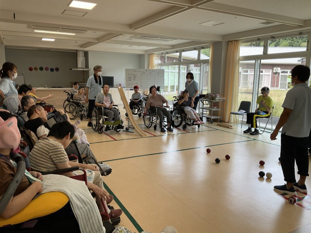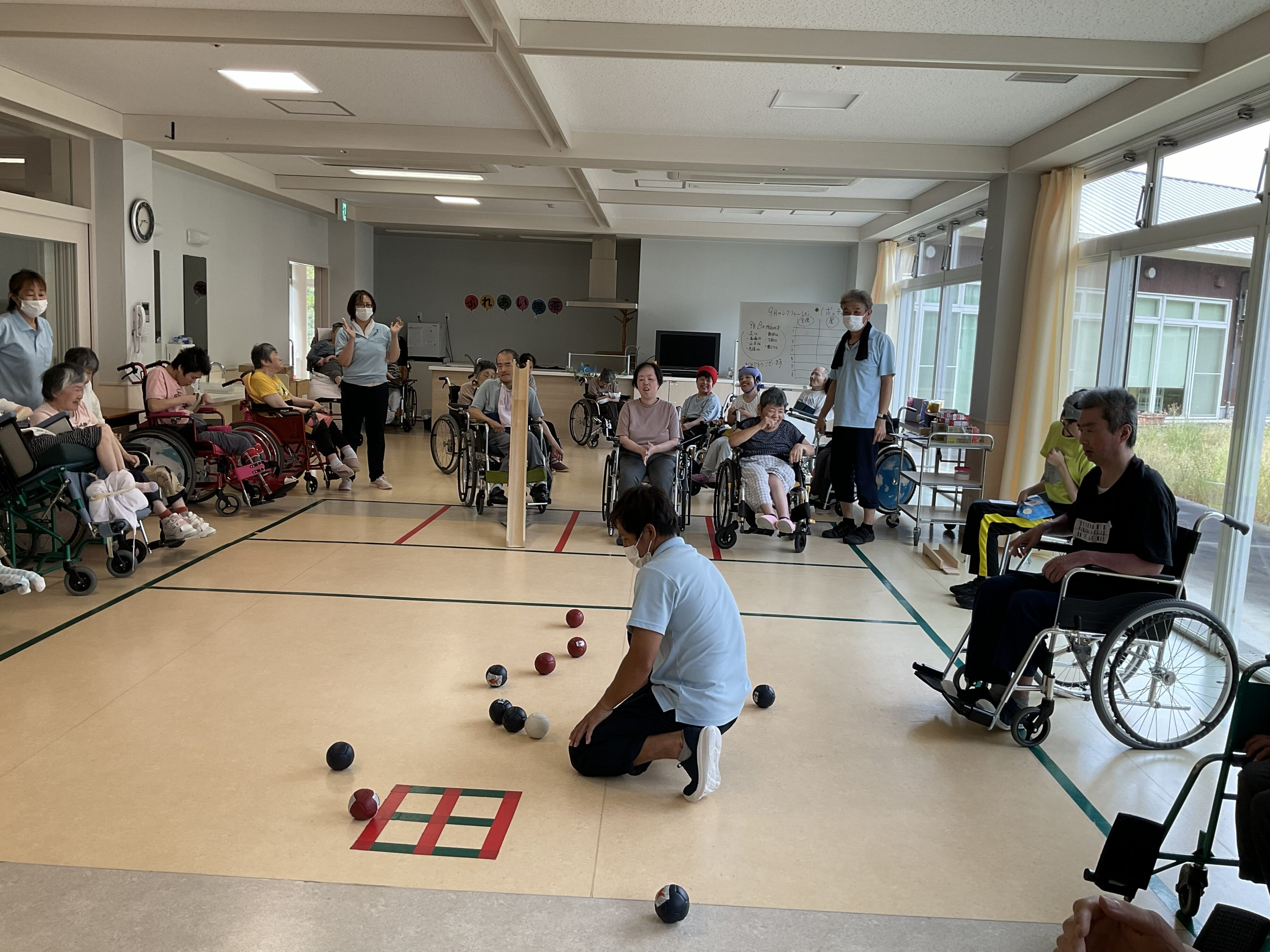 まだまだ暑い日が続きますが、スポーツの秋!ということで、グループ対抗でボッチャを行いました!