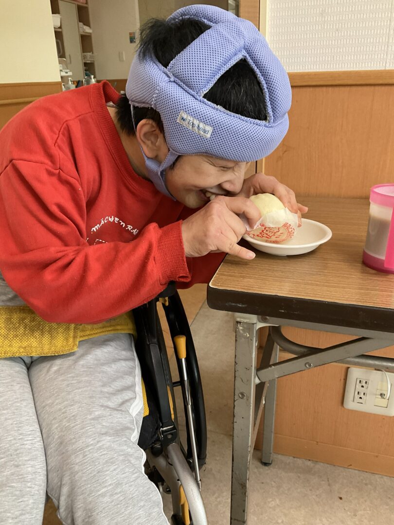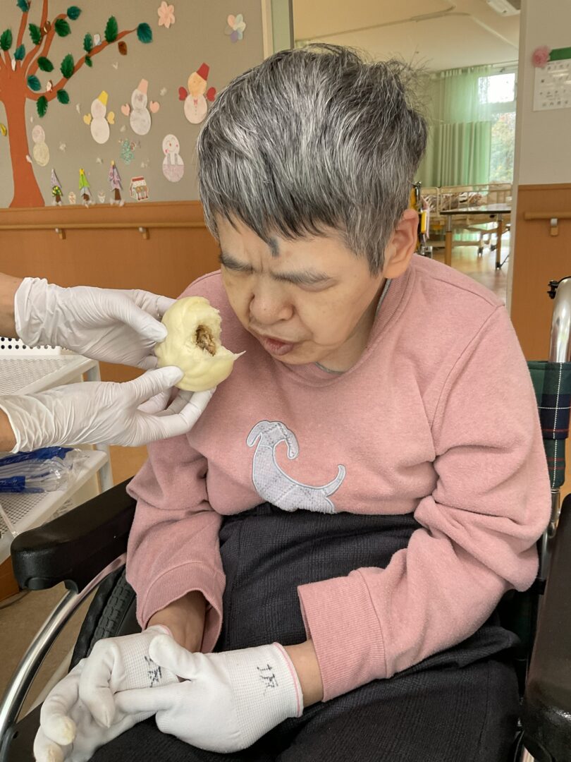 利用者様も大好きな肉まんで、とてもおいしそうに召し上がっていました。