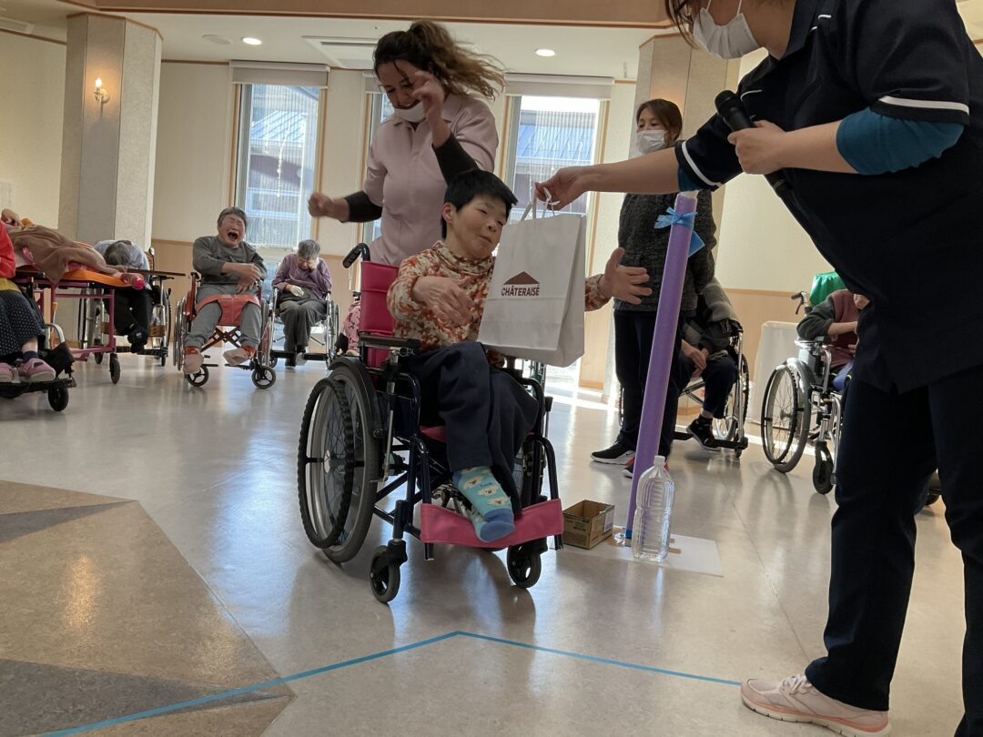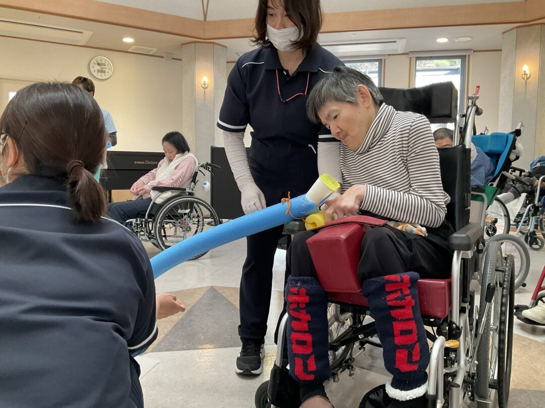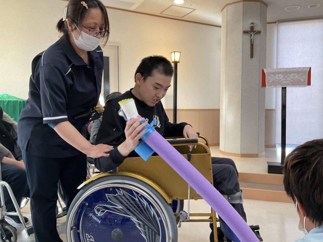 うまく飛ばすことができた時には「やった!」と笑顔があふれ、職員も一緒に楽しむことができました。