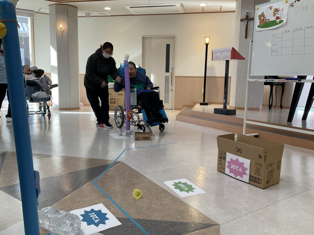 本日は羽根飛ばしのレクリエーションを行いました。